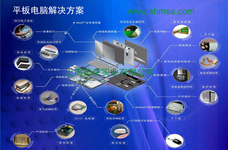 模切和印刷标签产品在电子行业产品中的使用也极其广泛,我们就以上述平板电脑解决方案说明模切、印刷件在其中的应用。