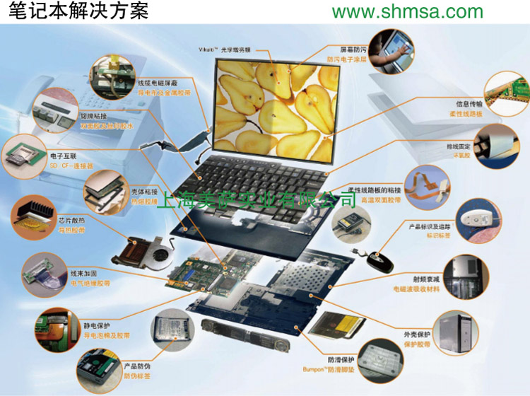 模切和印刷标签产品在电子行业产品中的使用也极其广泛,我们就以笔记本电脑解决方案说明模切、印刷件在其中的应用。