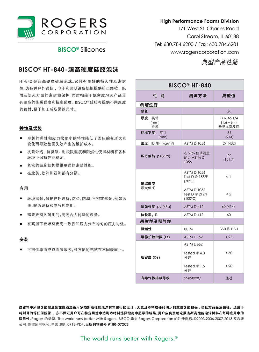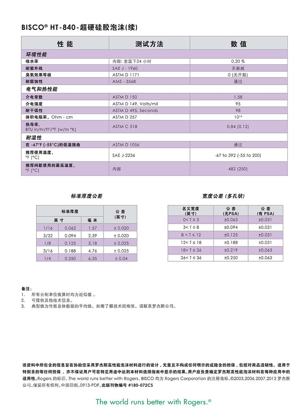 罗杰斯BISCO? HT-840 硬质硅胶泡棉