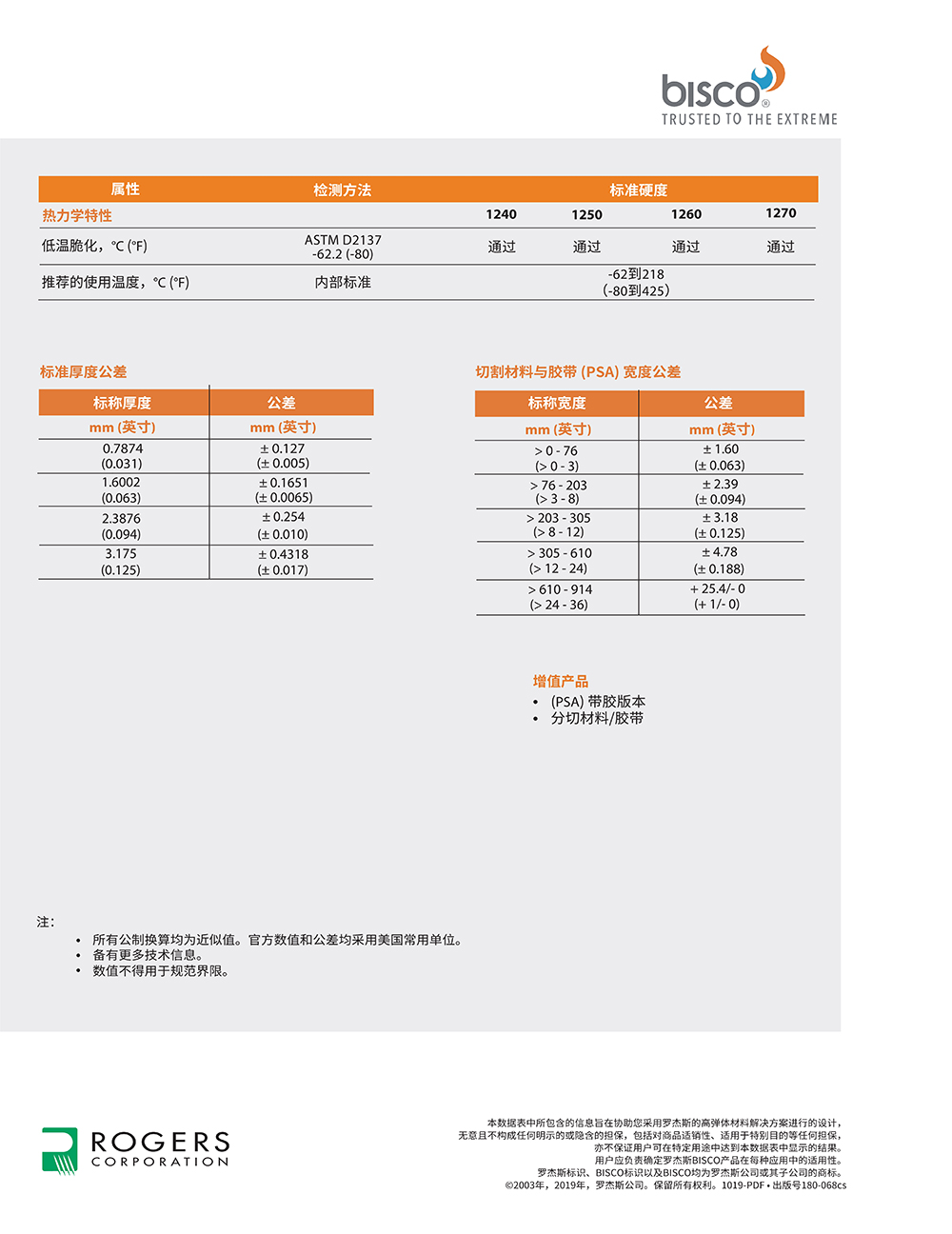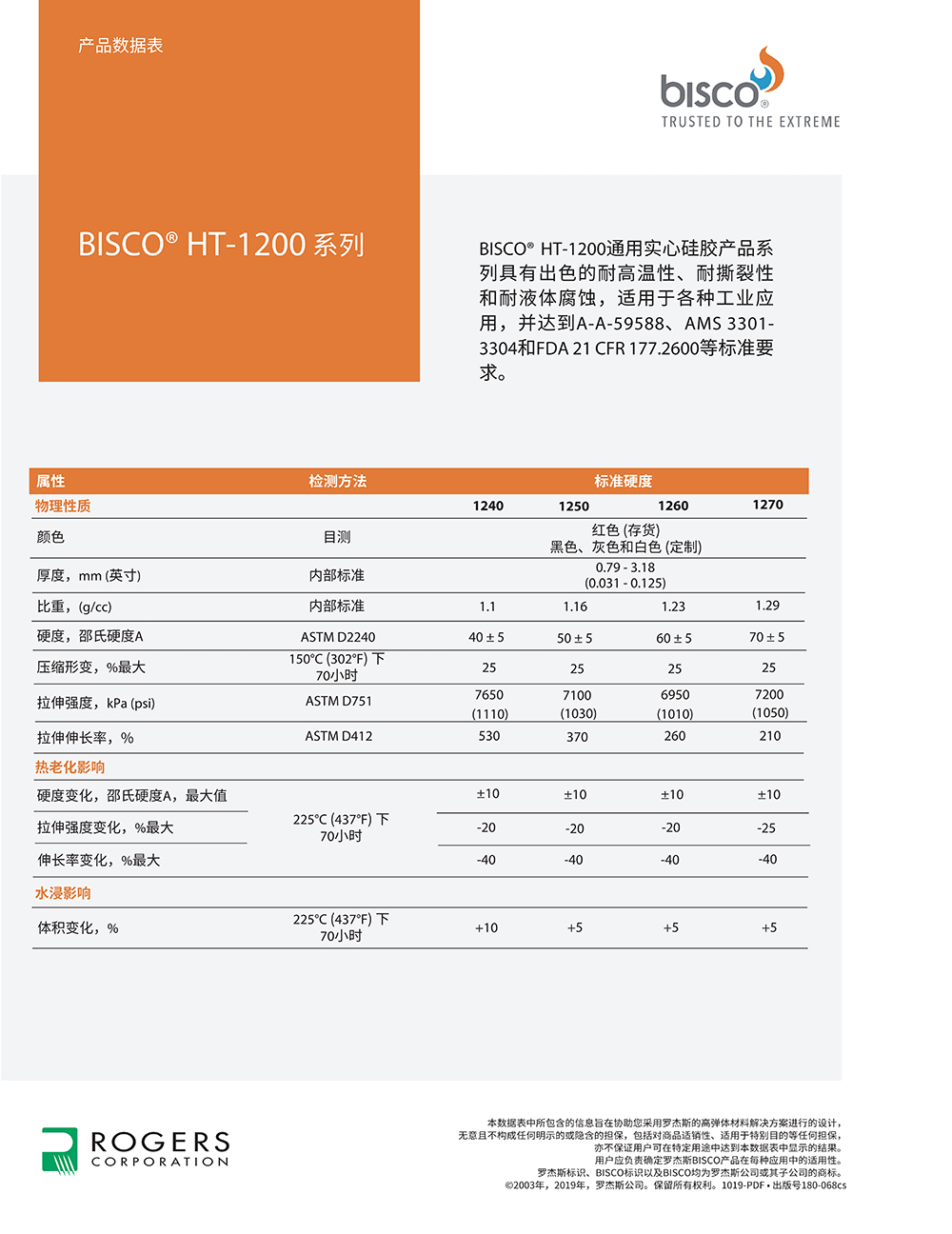 罗杰斯BISCO? HT-1200 系列硅橡胶