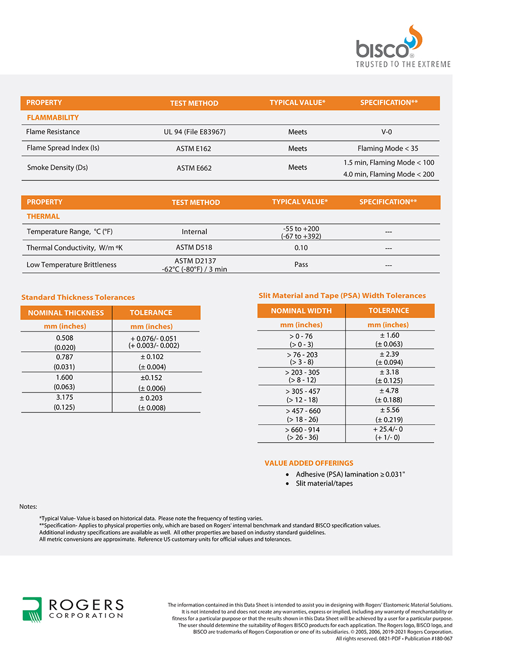 罗杰斯BISCO? HT-6360-65 实心硅胶