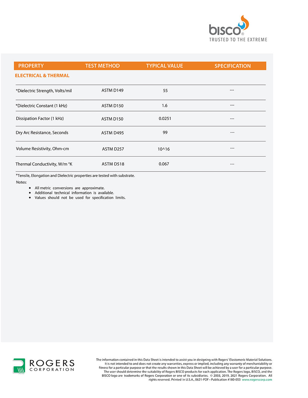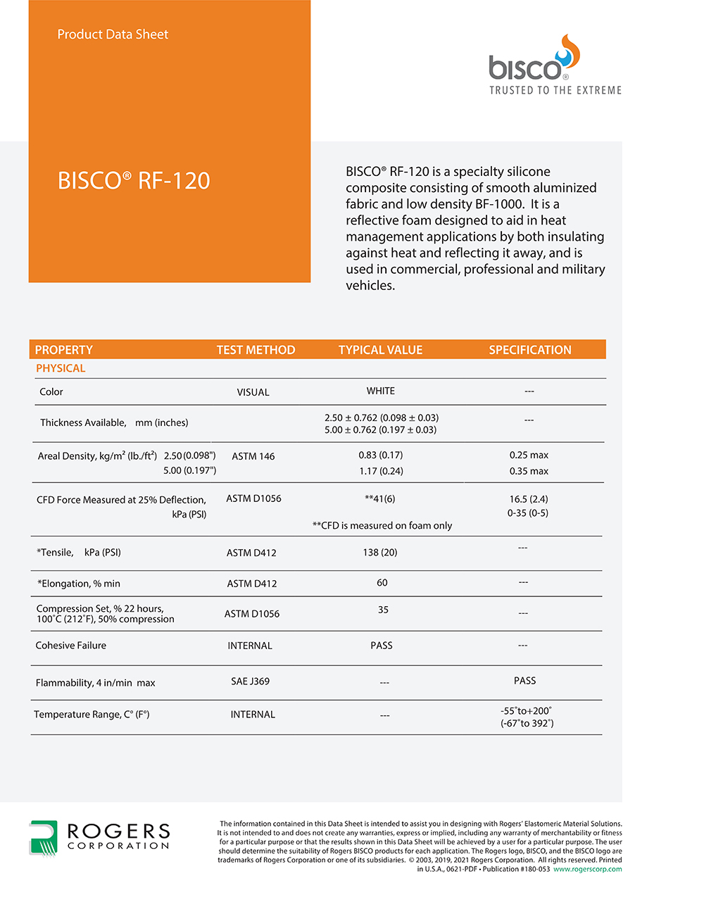 罗杰斯BISCO? RF-120 硅胶热防护材料