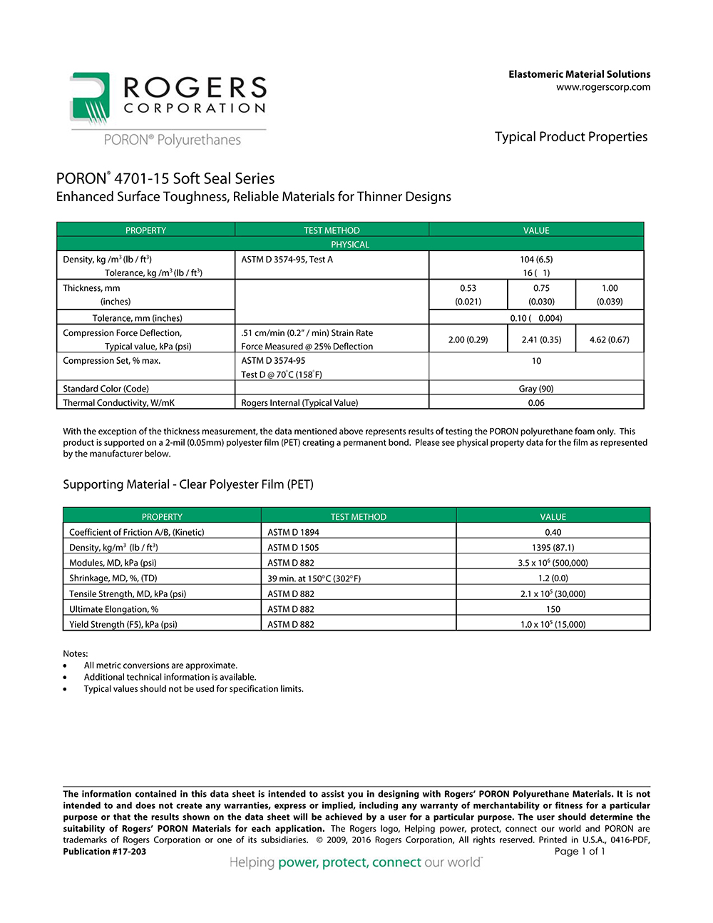 罗杰斯PORON? 软密封 4701-15 系列