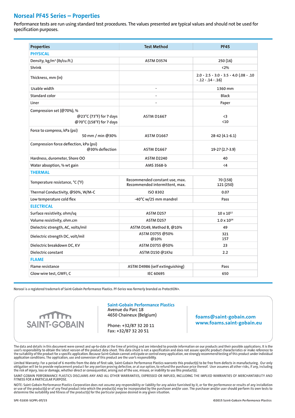 圣戈班Norseal? PF45 Series – Properties