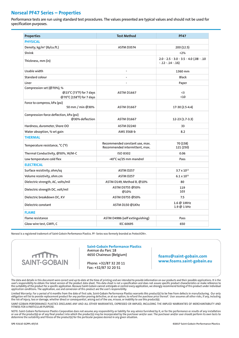 圣戈班Norseal? PF47 Series – Properties