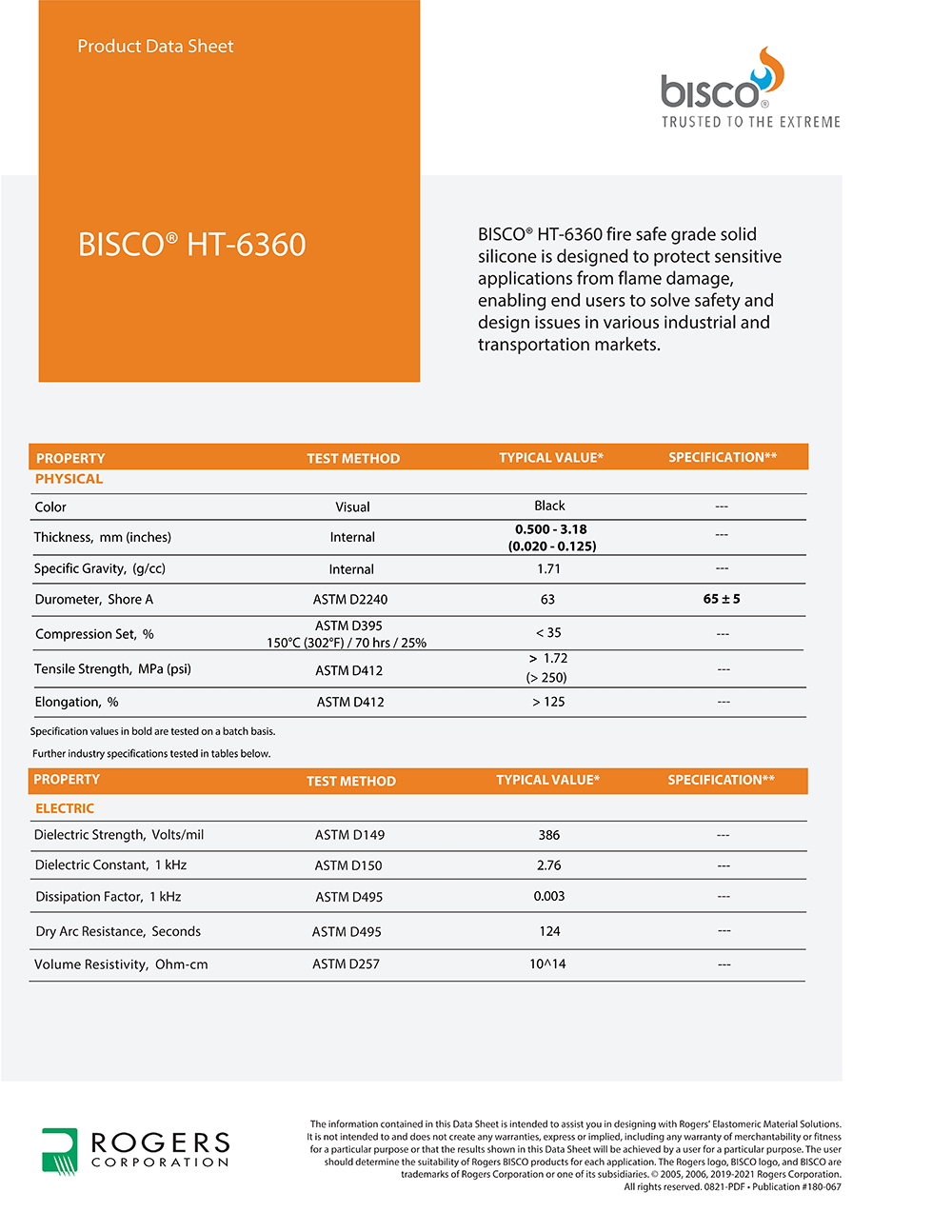 罗杰斯BISCO? HT-6360-65 实心硅胶