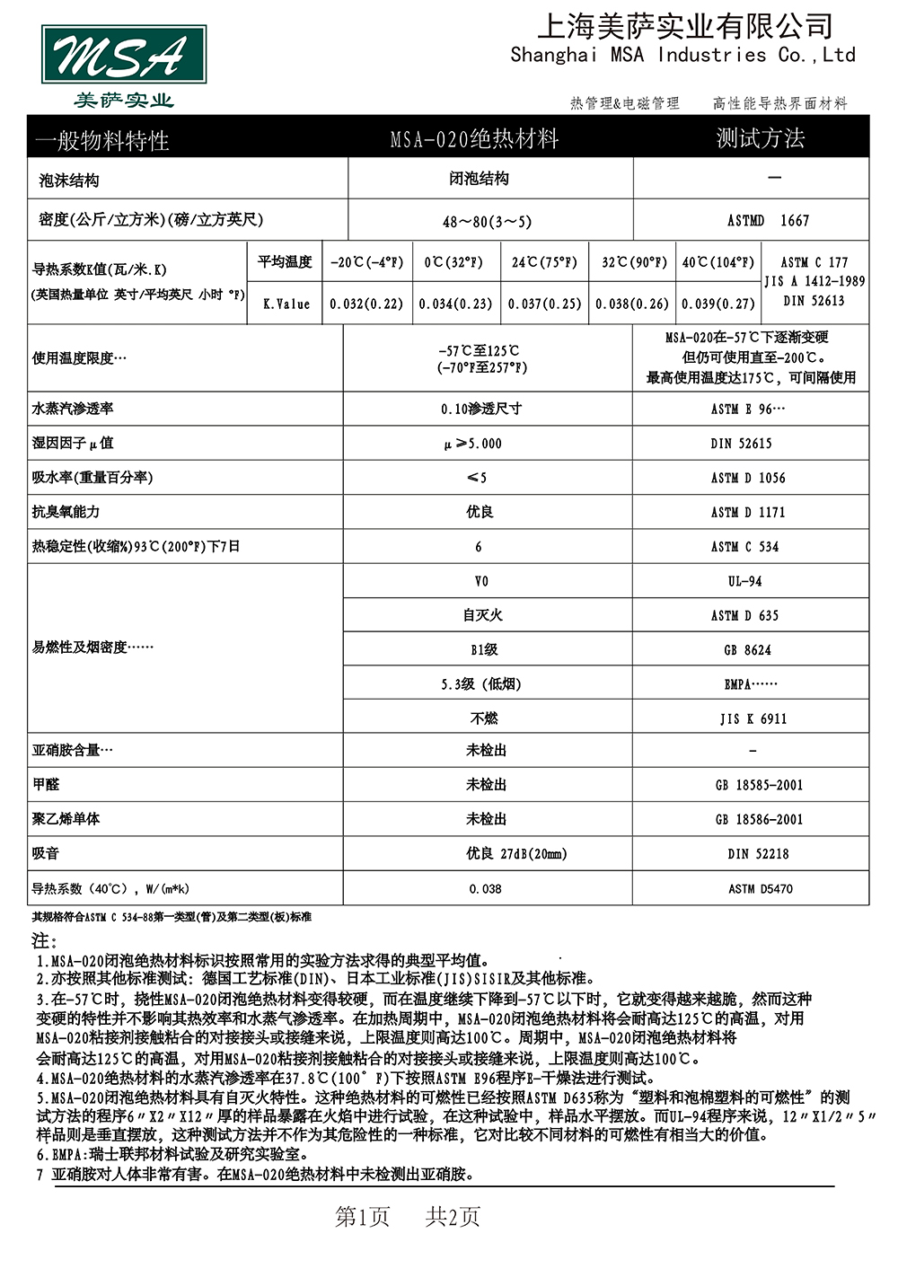 MSA-020 EPDM绝热材料